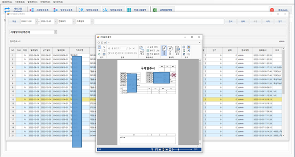 발주 및 전체관리는 PC를 통하여 처리하고, 소재의 입고 투입은 태블릿으로 처리하고 하여 현장과 사무실간의 업무는 분리하여 진행되었습니다. 물론 자동화 설비 연계는 카운터로 처리하였습니다^^