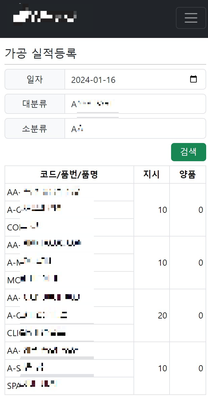공정별 생산실적 - 모바일에서는 어떻게 ? 본문
