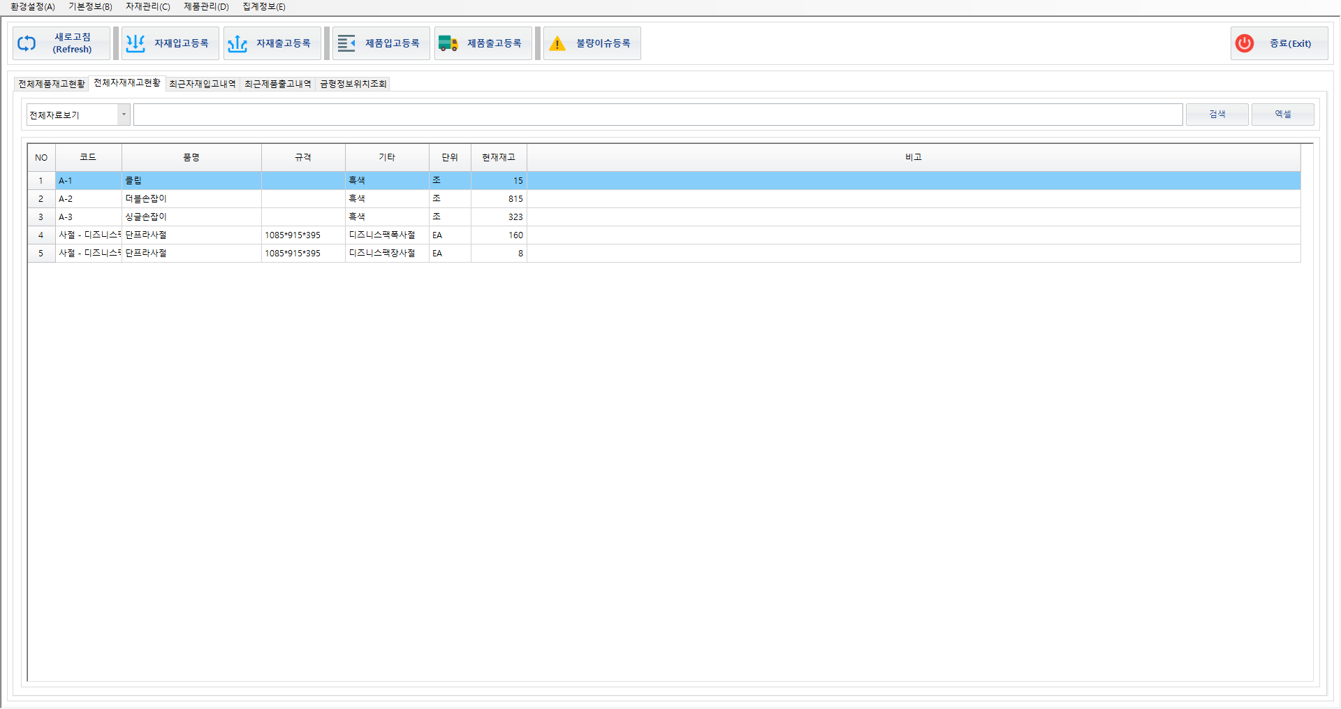 오늘은 엠엔디시스템에서 개발한 MES 프로그램은 간편하게 자재 및 제품 재고를 관리하는 프로그램을 소개시켜 드리려고합니다.