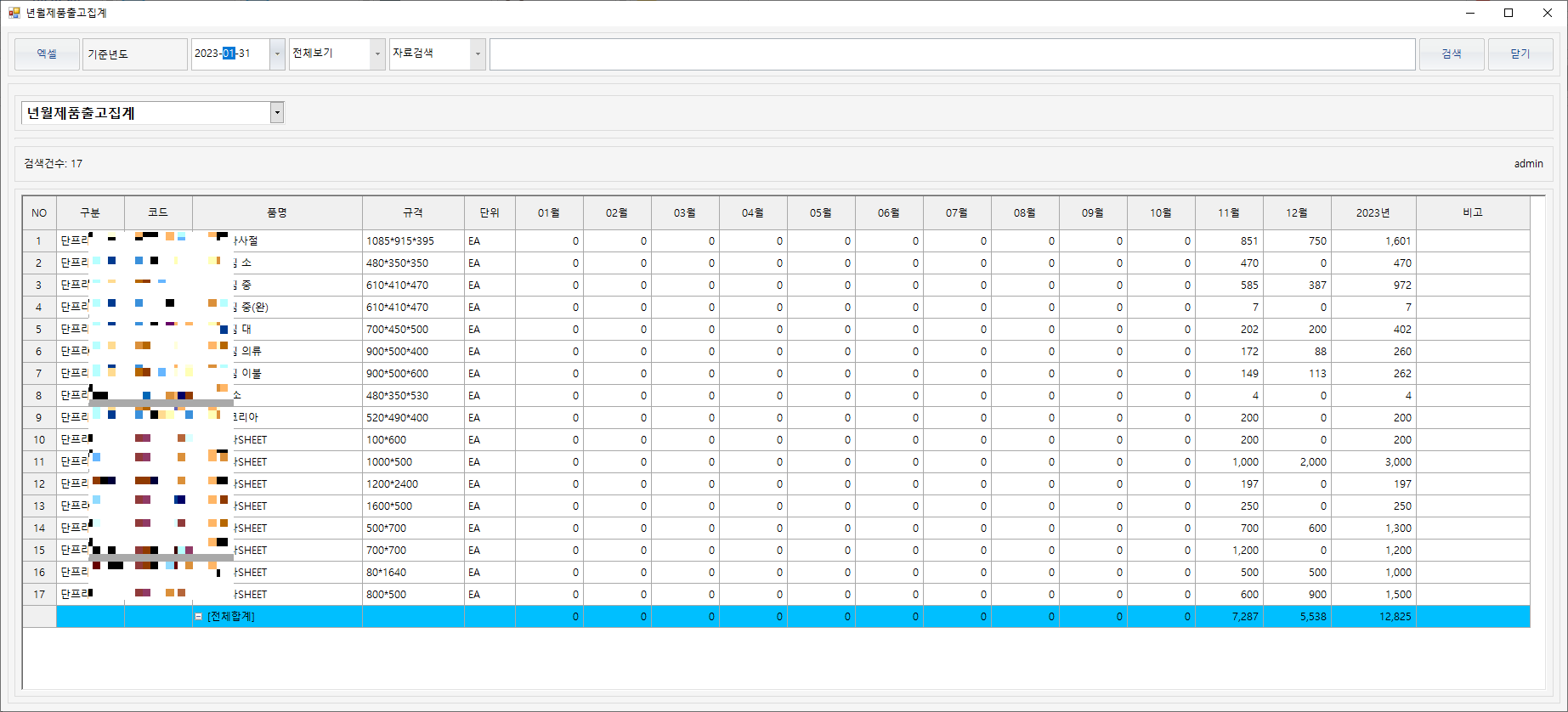 년월별로 제품 출고 집계만 파악하여도 많은 정보를 얻을수 있습니다. 자재 또한 마찬가지 입니다.