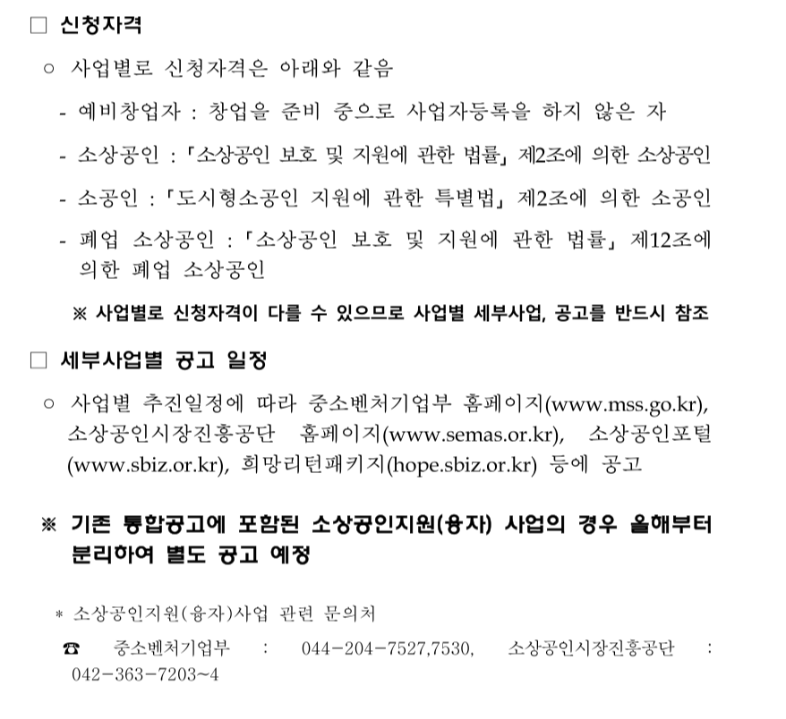 중소기업통합콜센터(국번없이 1357)으로 문의