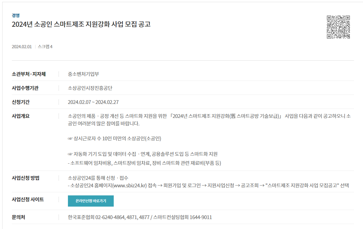 2024년 소공인 스마트제조 지원강화 사업 모집 공고 본문