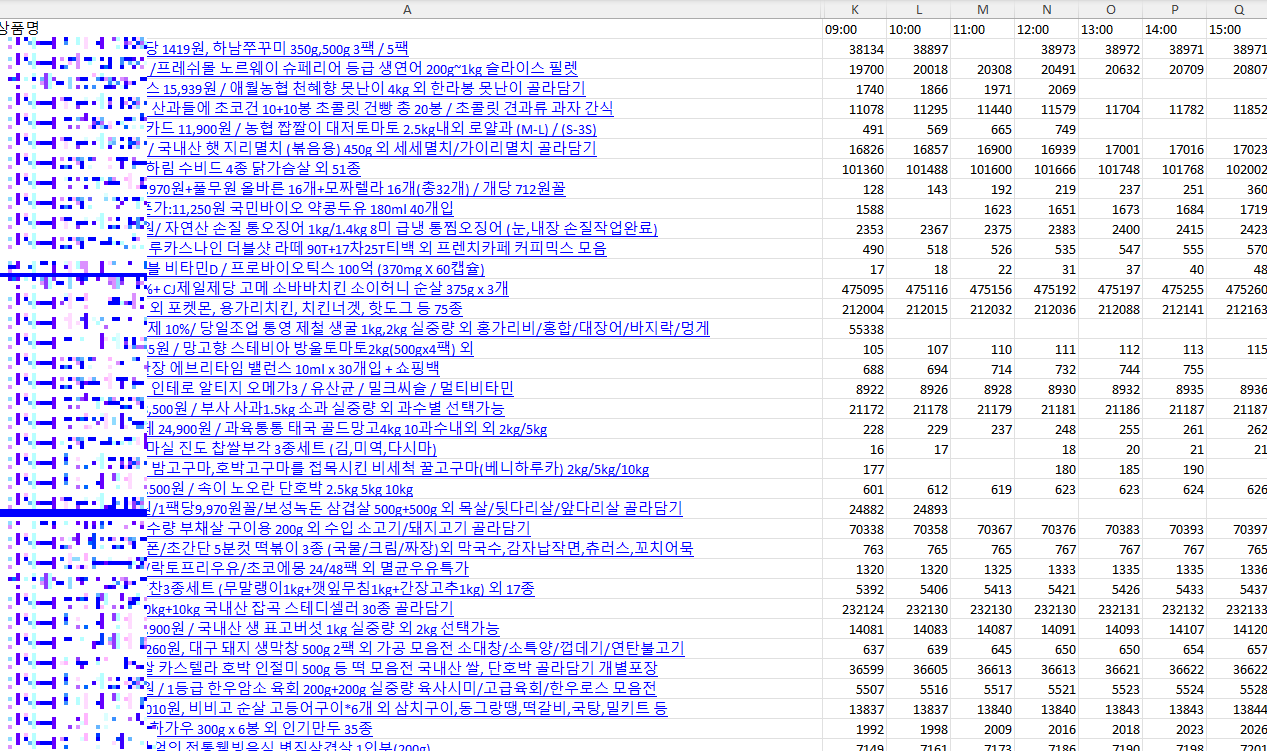 이 데이터를 보고 엑셀변환뿐만 아니라 집계하여 시간당 구매수량을 확인할수도 있겠다.. 라는 생각이 들어 추후에 엑셀변환작업은 선택으로 두고 프로그램에서 해당 데이터들을 그래프로 변환하여 조회하거나 집계하여서 보면 의사결정에 큰 도움을 주는 정보가 될수도있겠다.. 라고 생각이 들더라구요