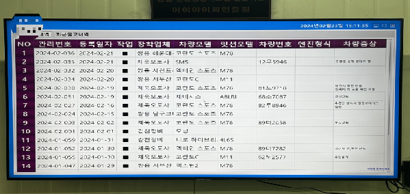 기존 차량 수리 현황판은 화이트 보드에서 사무실 직원이 펜으로 직접 적고 지우고 했었습니다.