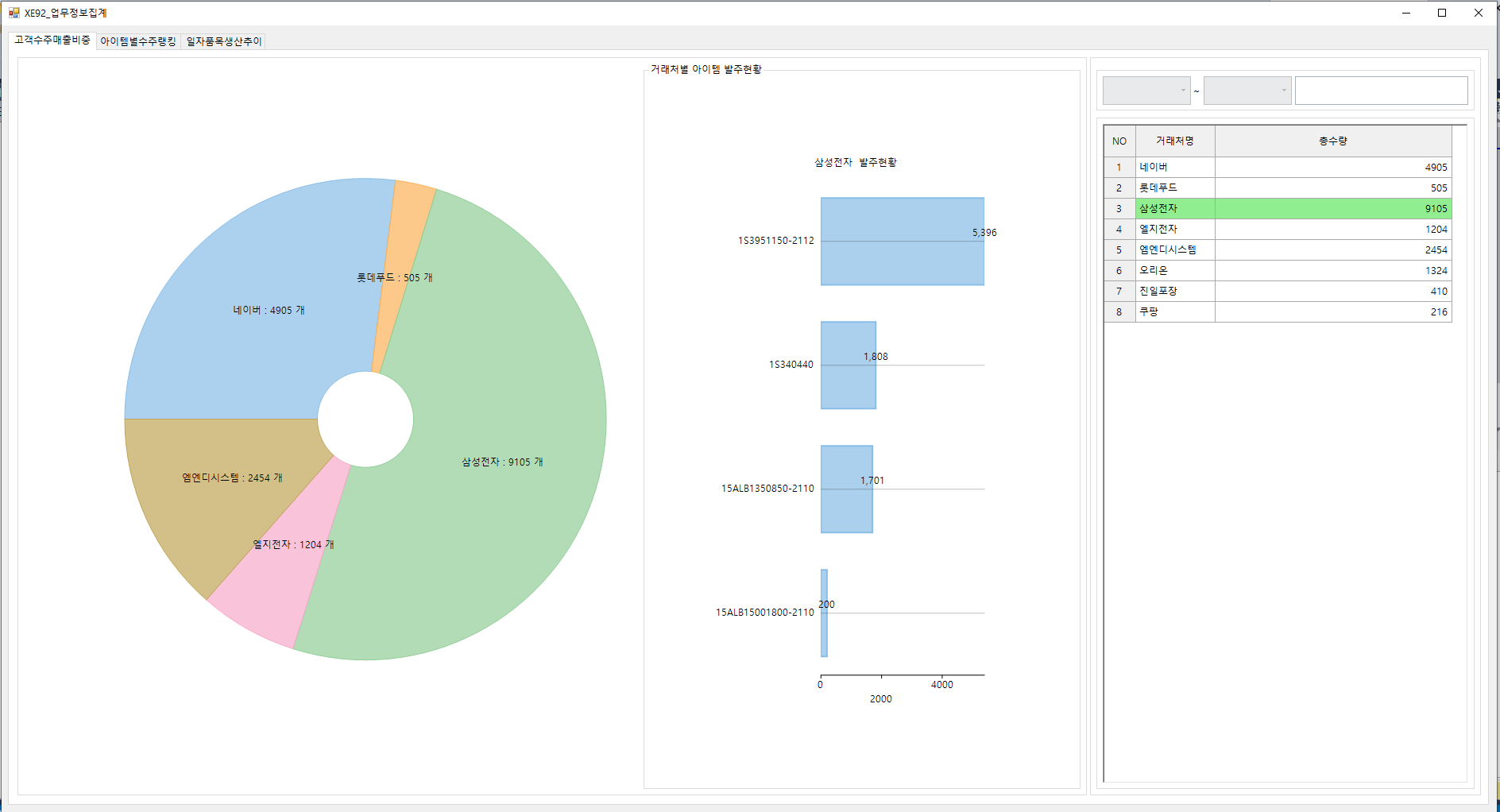 현재 아이템별 발주현황, 거래처별 아이템발주현황