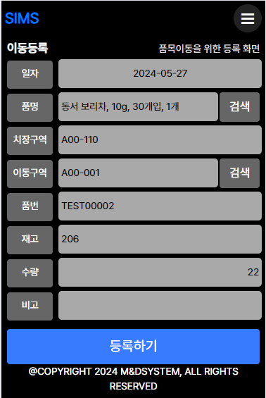 모바일에서 재고관리를 위한 SIMS 프로그램을 소개드립니다.