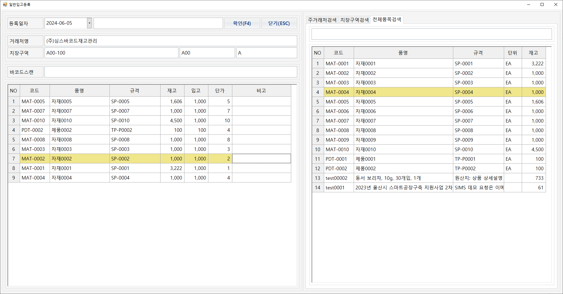 - SIMS 바코드 재고관리 시스템 일반 입고 등록 방법