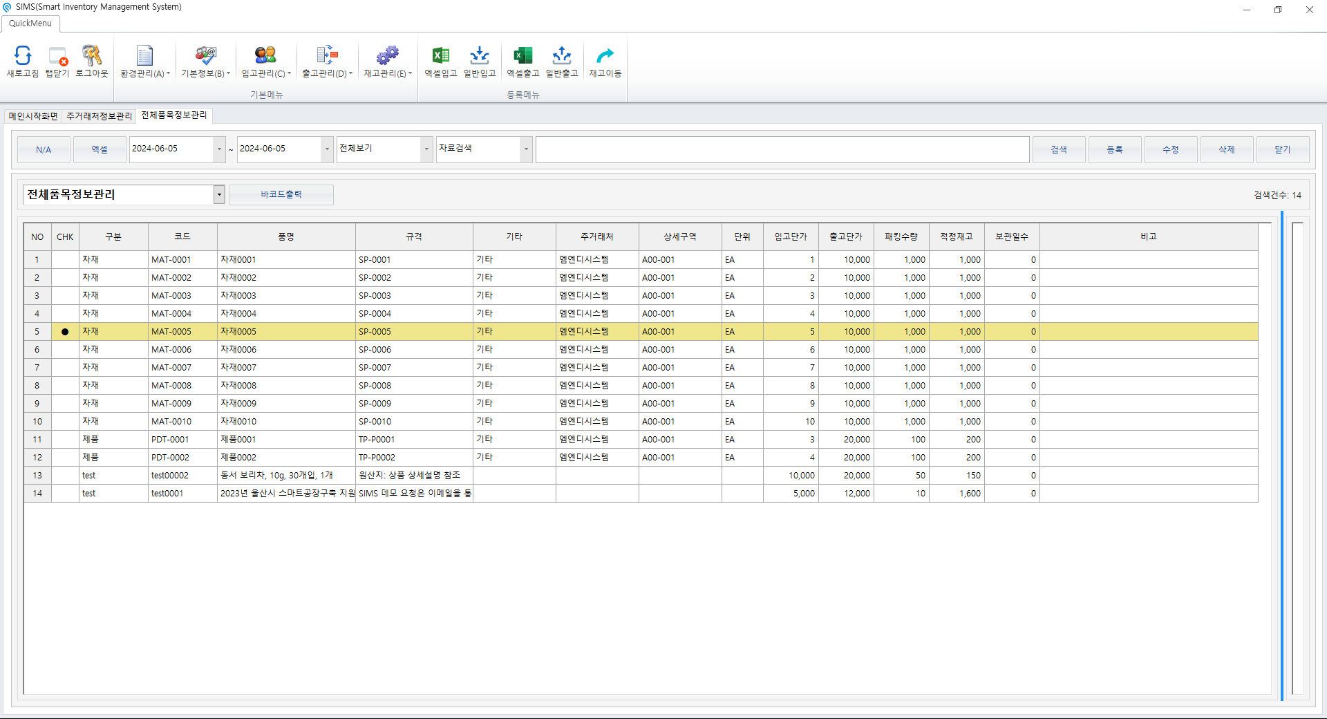 - SIMS 바코드 재고 관리시스템의 전체 품목 정보관리 사용방법