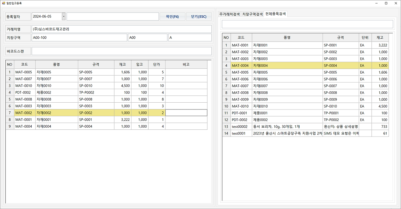 - SIMS 바코드 재고관리 시스템 일반 입고 등록 방법