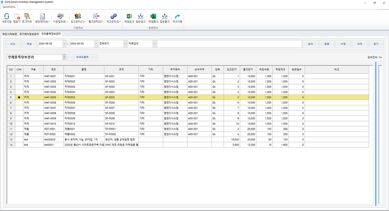 - SIMS 바코드 재고 관리시스템의 전체 품목 정보관리 사용방법