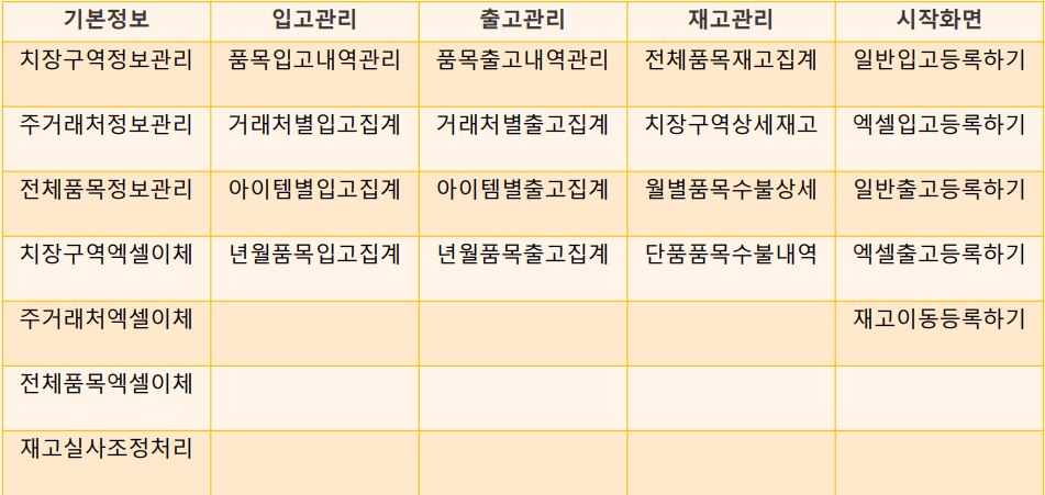 1.정보입력 : 주거래처 선택하기! -> 치장구역 선택하기! -> 품목 선택하기!