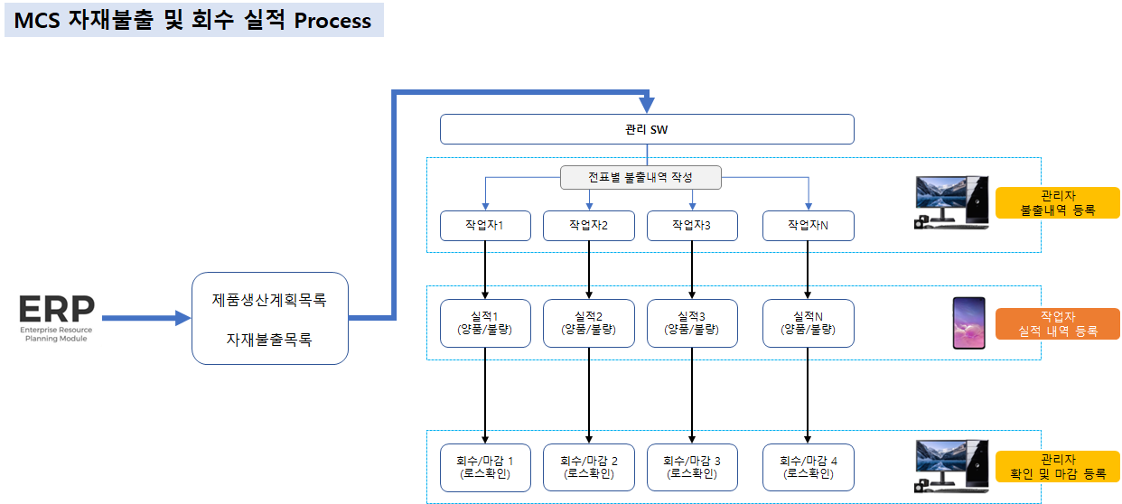 그래서....개별 작업자별 불출된 자재 내역과 반제품 생산 입고될 때 총 불출량과 총 조립량 및 나머지 자재량의 행방을 최종 확인하고 기록하는 것이 필요합니다.