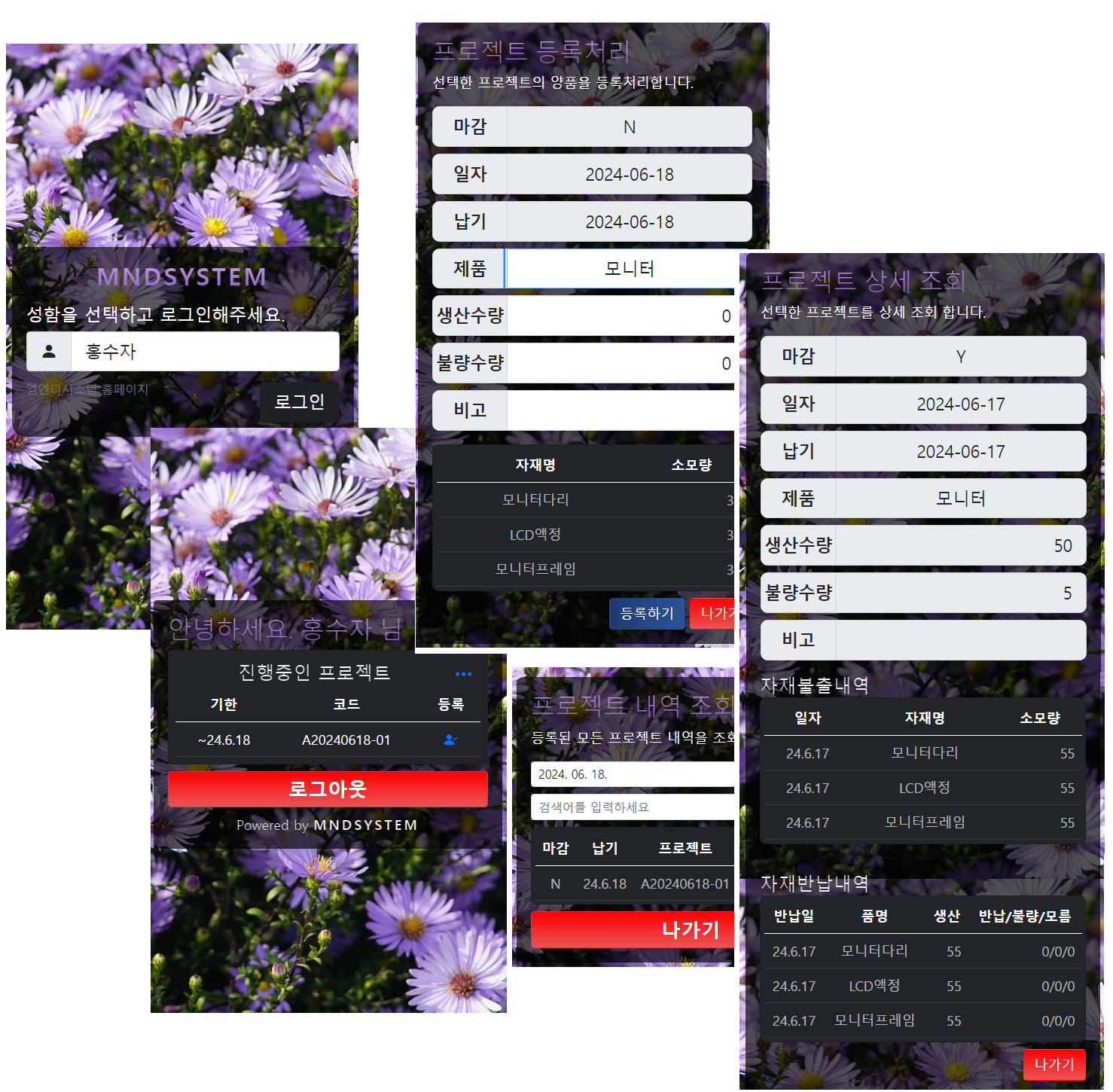 제가 들었던 요구사항들은 작업자분들이 아주머니라고 들어 배경화면을 꽃으로 정해보았습니다. 마음에 안드시다면 더욱 이쁜 꽃사진으로 바꿔드릴겁니다.