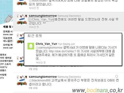 23일, 삼성전자의 자사의 트위터를 통해 "갤럭시S3가 가을에 출시된다는 기사가 떴는데 이에 대한 사실 여부를 확인해 달라"는 맨션에 대해 "전혀 사실 무근"이라고 전했다.