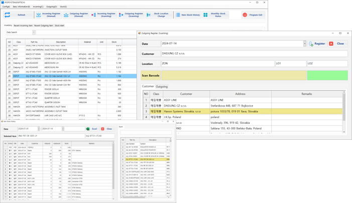 엠엔디시스템의 기본 프레임의 바코드 재고 관리시스템을 해외 공장에서 운영중인 사례 안내입니다.