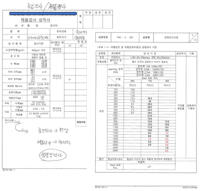 2) 제품 검사 항목에 따라서 제품 검사 결과 값 입력 (자동 수집 또는 수동 수집)