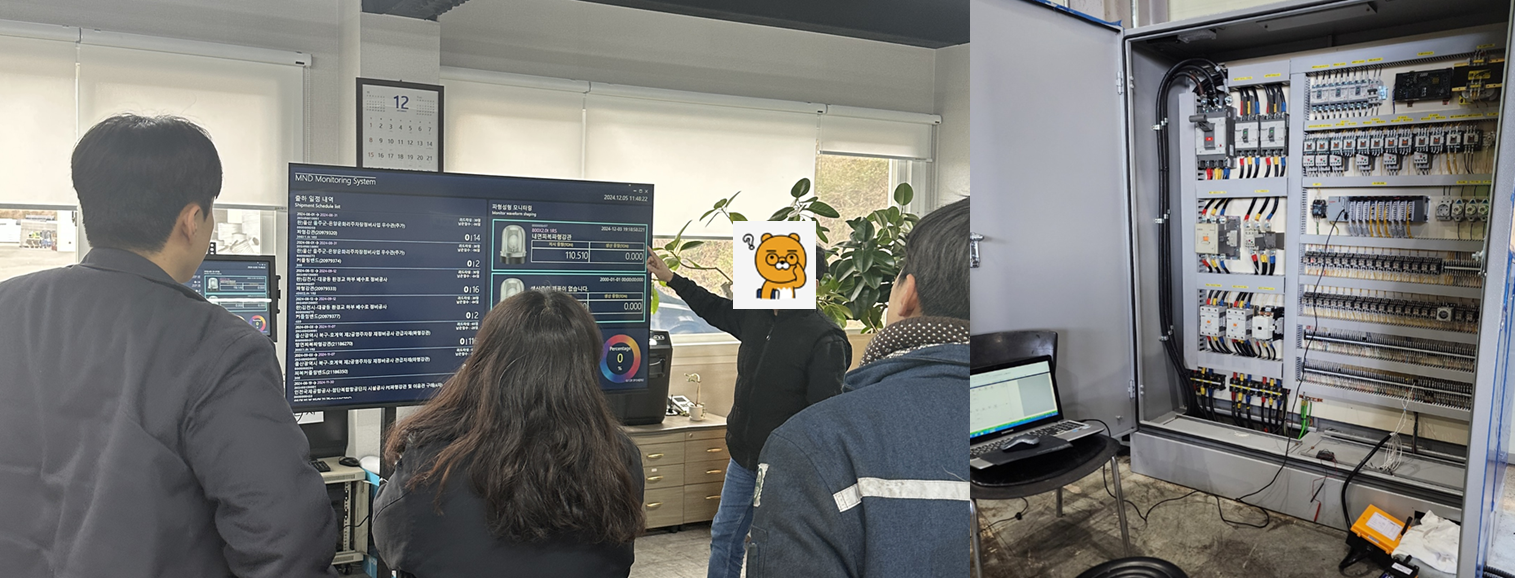 현장 설비를 전체 제어하는 제어반 컨트롤러를 신규 교체 하면서 MES와 연동할 수 있는 신호 및 데이터를 수집하고, 품질 측면의 검사 성적 데이터를 자동화로 레포팅 할 수 있는 기능을 우선으로 하여 MES를 구축하였습니다!
