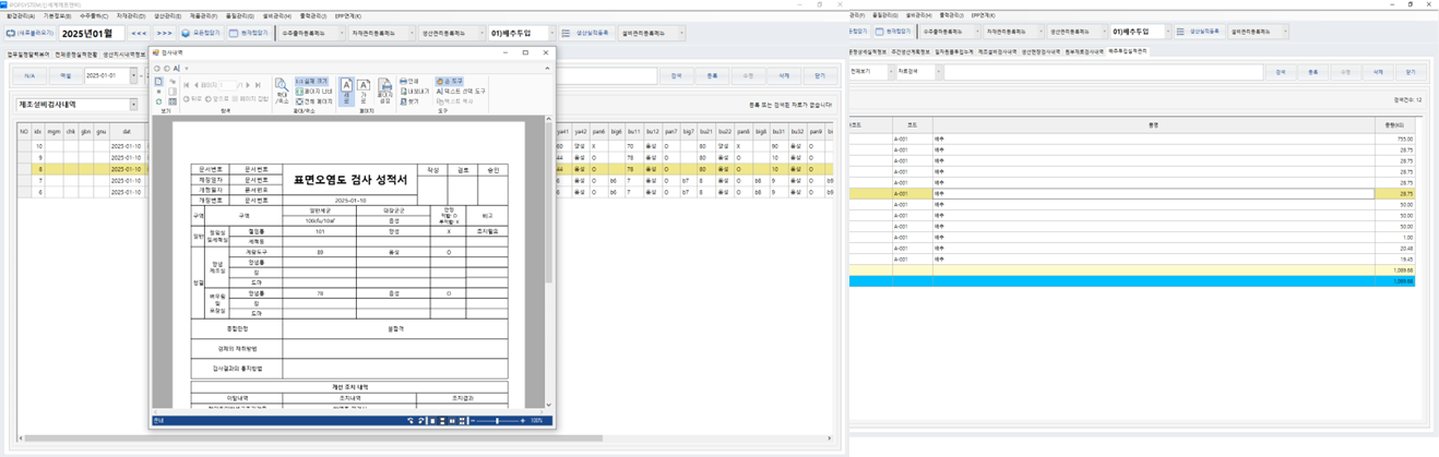 태블릿으로 해당 검사 일지를 작성하고 메인 시스템에서 레포트 데이터를 출력할 수 있도록 구조를 잡아놧습니다.