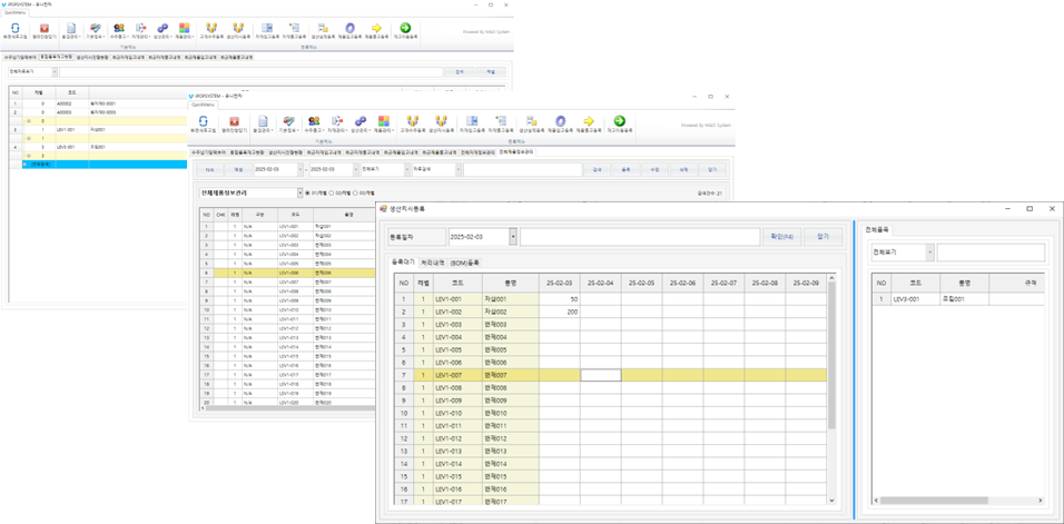 엠엔디시스템의 기본적인 MES 패키지 중에 소규모로 생산에 대한 이력을 관리할 수 있는 프로그램이 여러 커스터마이징 형태로 제작되어 구축진행 중입니다.