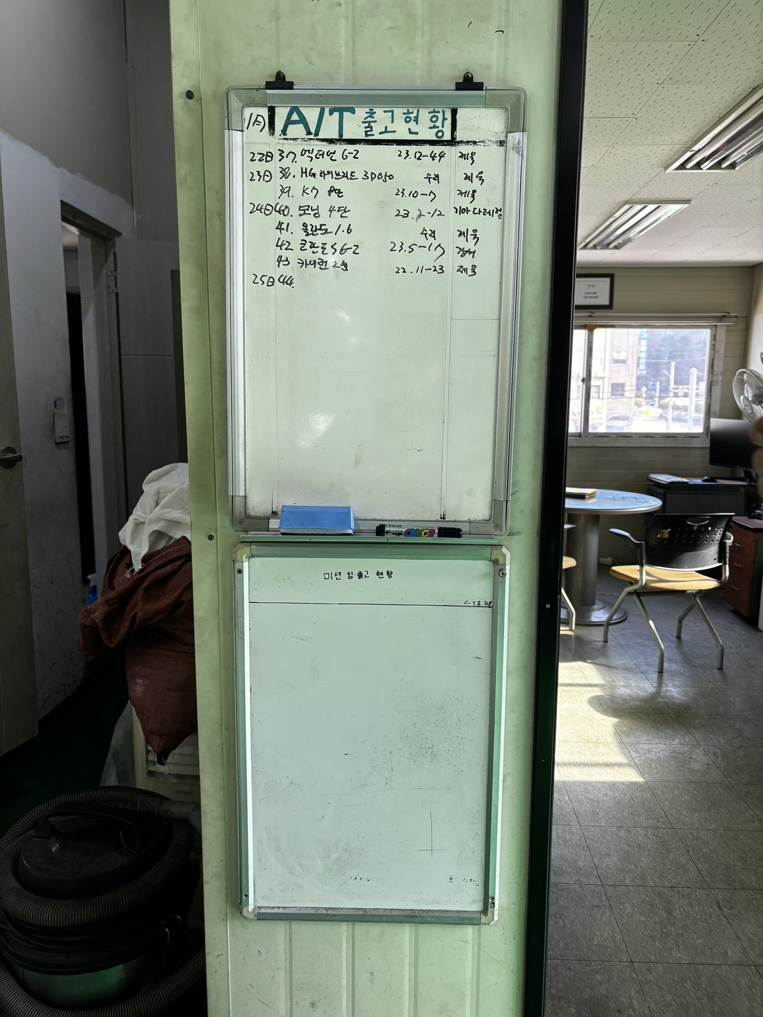 과거 OO오토의 현장에서는 위와 같이 화이트보드에 수기로 출고 현황을 기록했습니다.