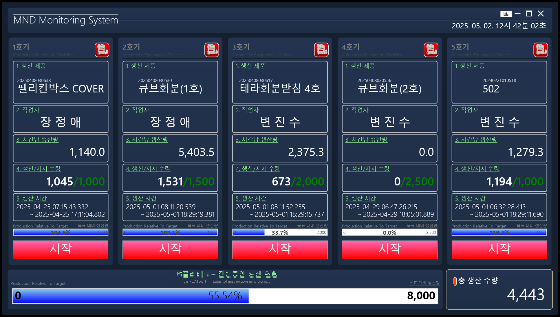 현장은 생산만 잘된다고 끝이 아닙니다. 에너지 절감, 품질 유지, 납기 준수까지 함께 관리해야 진정한 스마트팩토리입니다. MND 시스템은 그 모든 것을 한 화면에 담았습니다.
